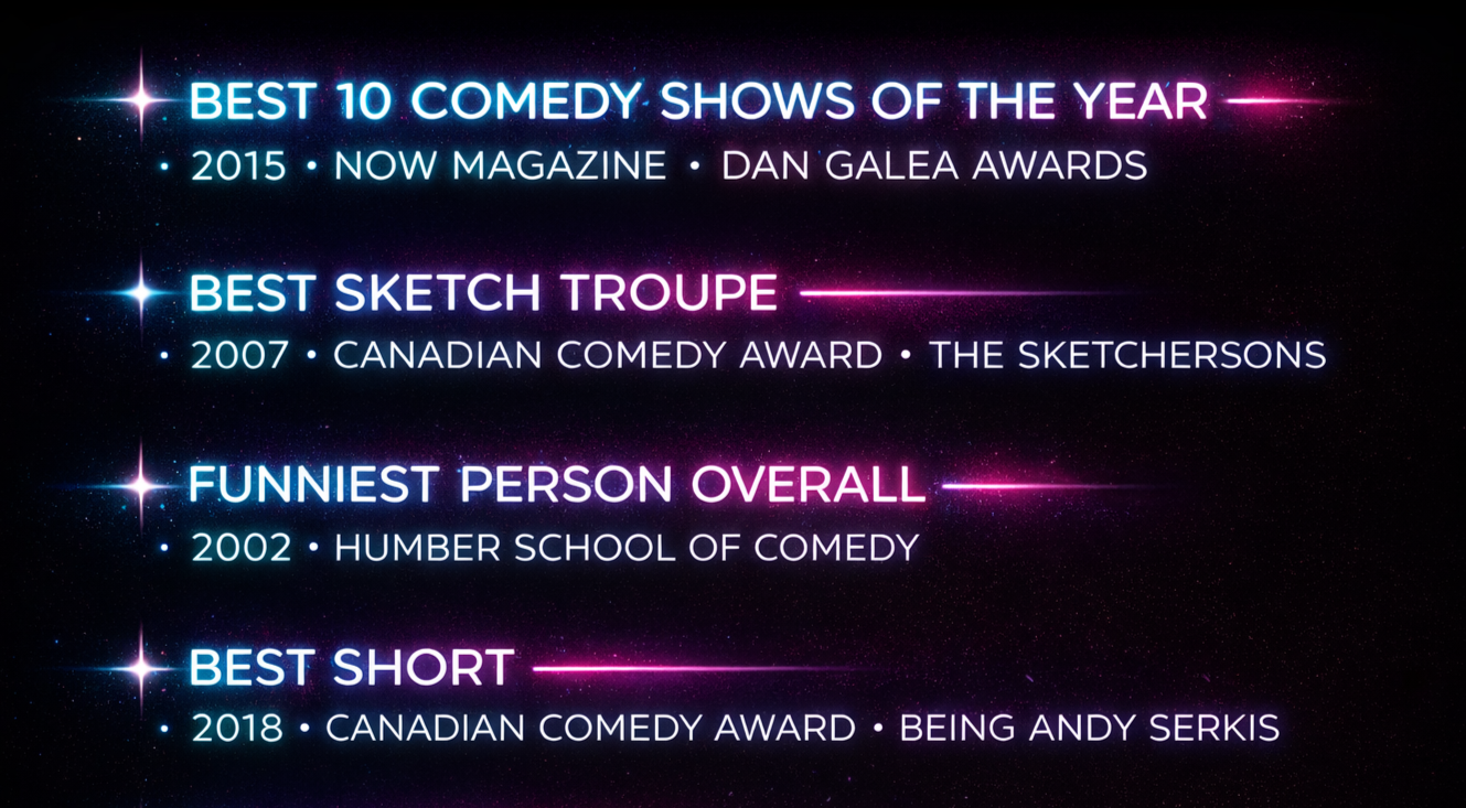 DAN GALEA is a Toronto Based Producer/Writer/Comedian who has a boutique production company called DG SPECIAL PRODUCTIONS. He just put out an album produced by Scott Thompson from Kids in the Hall called Inter-Dan-Mensional (availlable on all the streamers). He is currently teaching Stand-Up Comedy at the world famous Comedy Bar. He has done shows in Montreal, LA, Toronto, New York and Vancouver. He has worked with some of the top names in Canadian and American Comedy Including Don Ferguson, Judah Freidlander, Will Sasso, Jason Priestly, The Kids in The Hall, Baroness Von Sketch, WWE Superstars and many more. Dan was a founding member of the award winning sketch troupe The Sketchersons, Producer/Head writer of the The Boom, and he was the producer and creator of Primo. Dan produces a variety of unique shows including Stand Up Night In Canada, All Good Comedy, and Bloomin Funyuns plus The Backyard Comedy Party, Funny for Money To Help Somebody and Music/Comedy on the river. He’s been on tv too, on shows like The Kids in The Hall Reboot, Baroness Von Sketch, Odd Squad, Gen V, Rookie Blue, Private Eyes, Law & Order Toronto, Jett, The Amazing Gayl Pile, Much Music’s Video On Trial, Comedy Central's Crawford, Cocktails, True Dating Stories, Cock’d Gunns, Comedy Bar (The Show) and Pure Pwnage! Dan also recently won a Canadian Comedy Award for Best Comedy Short for his short Being Andy Serkis.